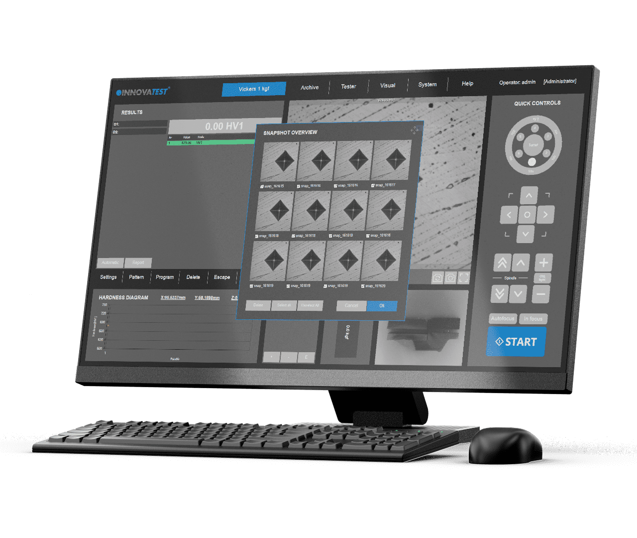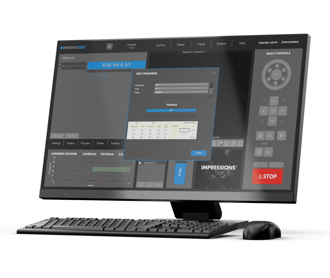 IMPRESSIONS™ Software, designed and built by INNOVATEST engineers to simplify the most complicated hardness testing requirements from many industries in the hardness testing field. Our GUI (Graphical User Interface) contains predesigned preferred applications, advanced workflow control, enhanced reporting and it is very easy to learn.